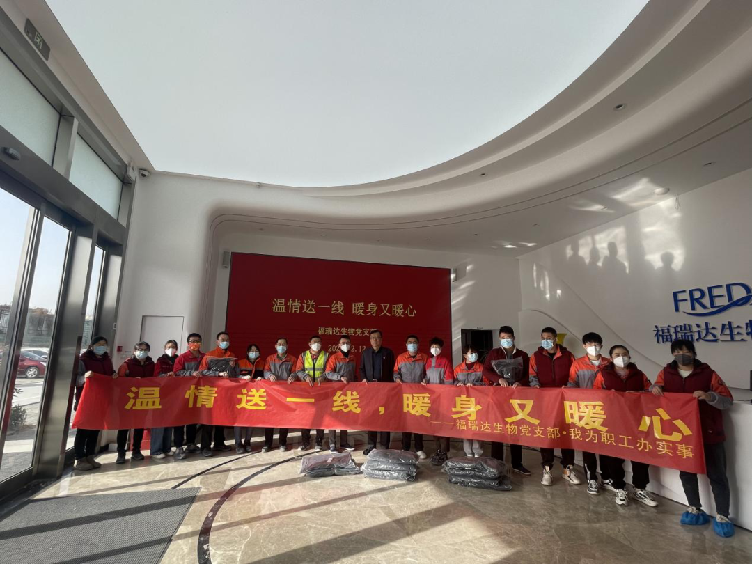 近日寒潮來襲,濟南氣溫急劇下降。為進一步加強對一線員工的關心關愛,切實維護廣大員工的身心健康,確保一線員工溫暖過冬,12月12日,福瑞達生物股份黨支部開展“我為職工辦實事”活動,黨支部書記王偉帶領黨員代表為73位員工送上御寒沖鋒衣。