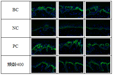 通過離體皮膚實(shí)驗(yàn)發(fā)現(xiàn),【煥齡400】可以顯著提升Collagen XⅦ的表達(dá),提升率為169.70%。穩(wěn)固基底網(wǎng)狀結(jié)構(gòu)和表皮的連接。