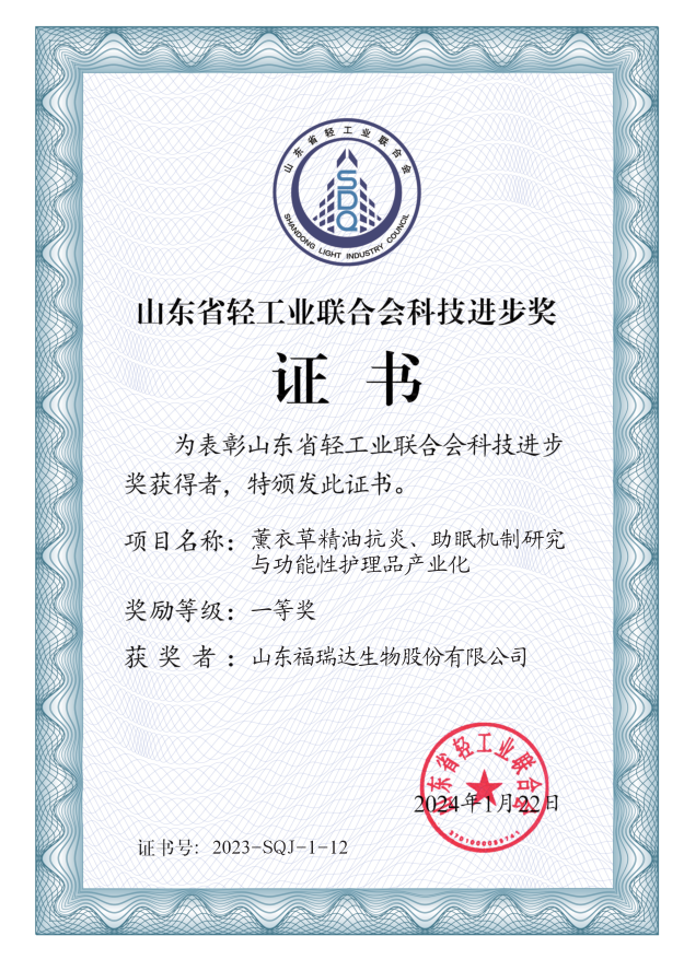 近日,山東省輕工業(yè)聯(lián)合會發(fā)布《關(guān)于2023年度山東省輕工業(yè)聯(lián)合會科學(xué)技術(shù)獎勵的決定》,福瑞達生物股份申報的“基于皮膚微生態(tài)研究的功能皮膚護理產(chǎn)品開發(fā)”、“薰衣草精油抗炎、助眠機制研究與功能性護理品產(chǎn)業(yè)化”兩個項目榮獲2023年度山東省輕工業(yè)聯(lián)合會科技進步獎一等獎。