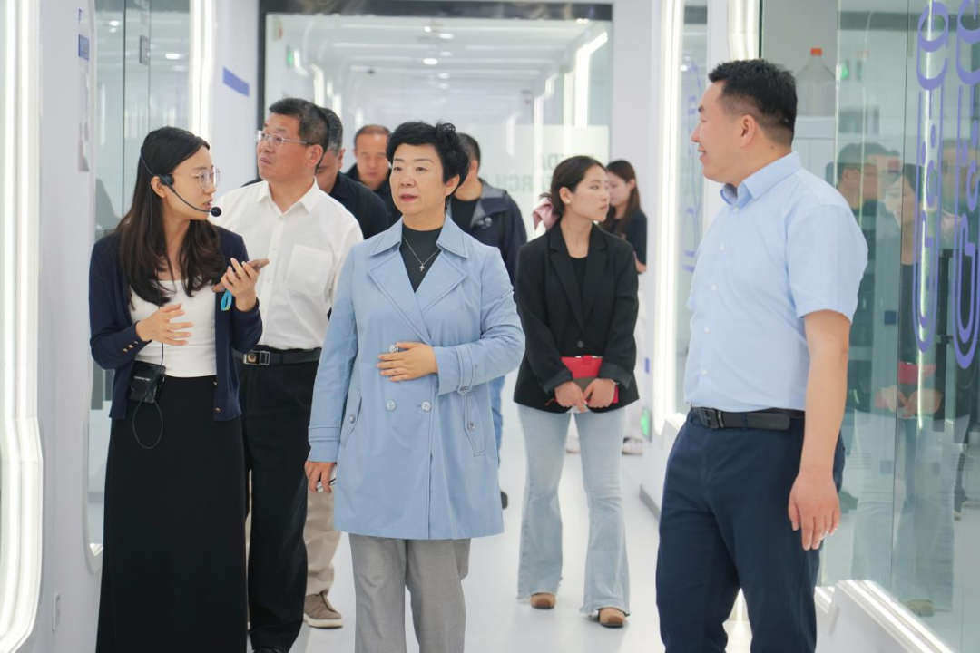 調(diào)研組一行首先參觀了福瑞達世界美妝科技館、化妝品透明工廠、研發(fā)中心實驗室及集團總部展廳。作為國內(nèi)化妝品行業(yè)的頭部企業(yè),福瑞達生物股份依托“妝藥同源”的科研優(yōu)勢、品牌優(yōu)勢及產(chǎn)業(yè)協(xié)同優(yōu)勢,在玻尿酸、重組膠原蛋白等化妝品原料、功效性護膚品開發(fā)等領(lǐng)域取得顯著成果。蘇磊紅局長詳細詢問了企業(yè)在原料提取工藝、功效驗證、質(zhì)量管控等方面的技術(shù)突破,并對透明工廠全過程智能化、數(shù)字化、綠色化管理表示高度認可。